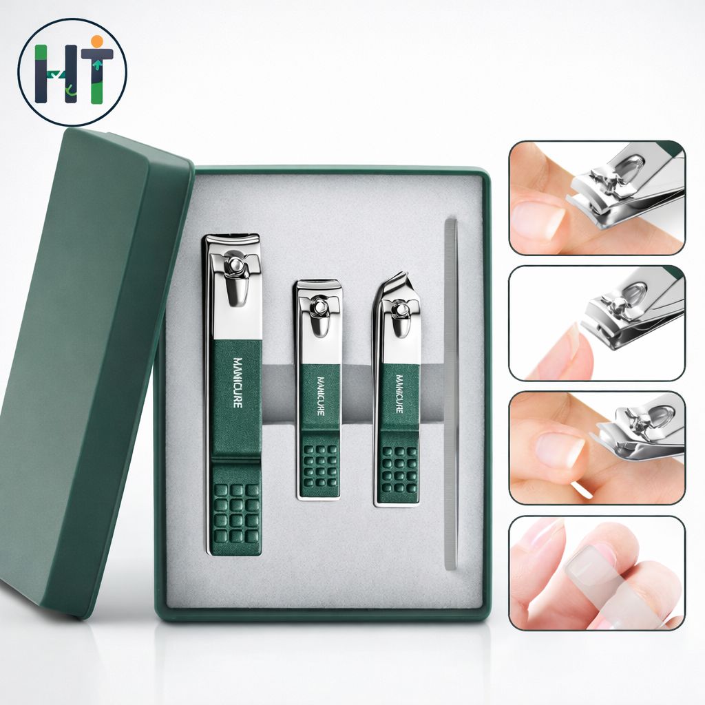 Nail Cutter Set, Ultra Sharp Sturdy Fingernail Toenail Clipper Nail Clipper with Glass file 4 Pcs set for men women adult nail cutter set for Thick Toenails & Nails (GREEN Set of 4 with Box)